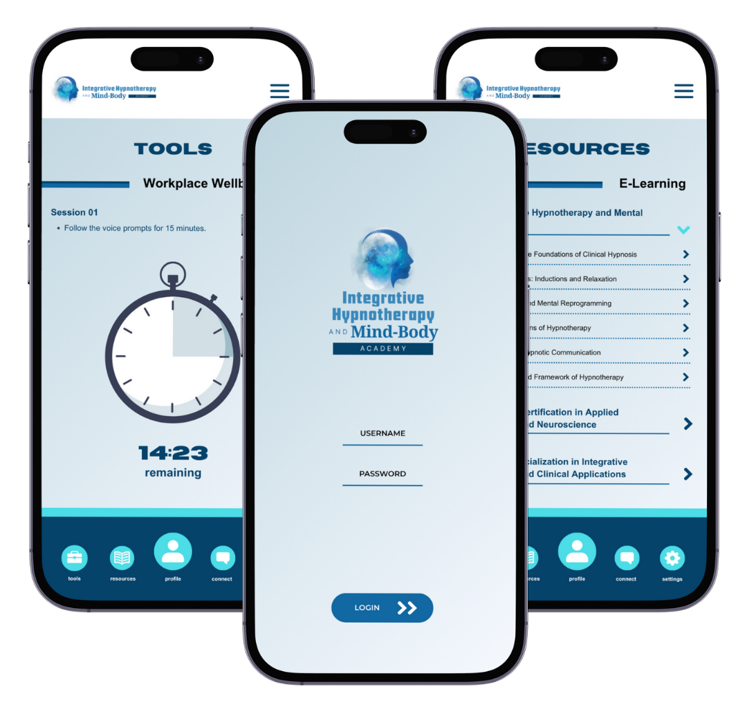 The Integrative Hypnotherapy and Mind-Body Academy provides an in-depth, multi-level training pathway that bridges neuroscience, psychology, and clinical practice. Beginning with the foundations of modern hypnotherapy and progressing to advanced specialization, the curriculum equips professionals with concrete, measurable tools for mental health, trauma recovery, and workplace performance.